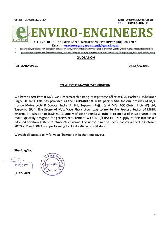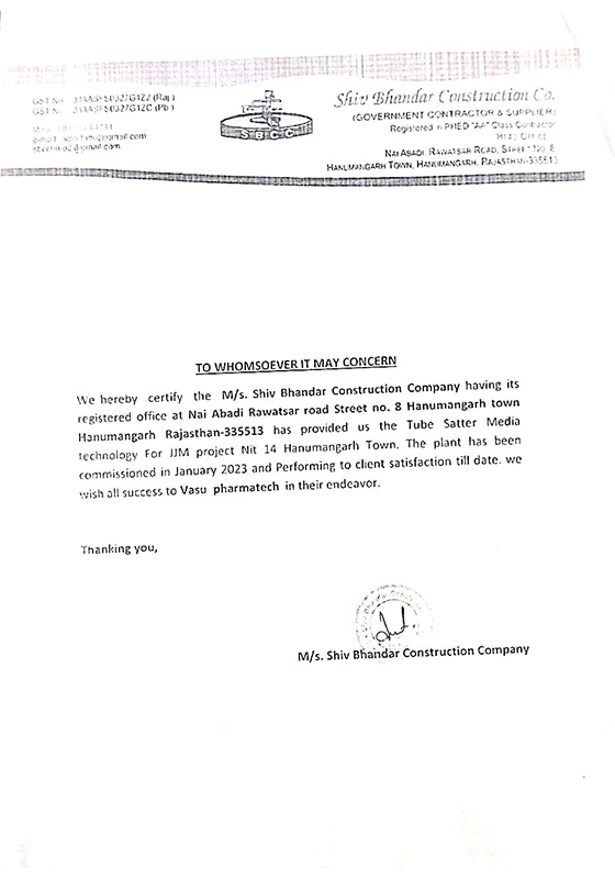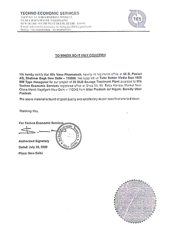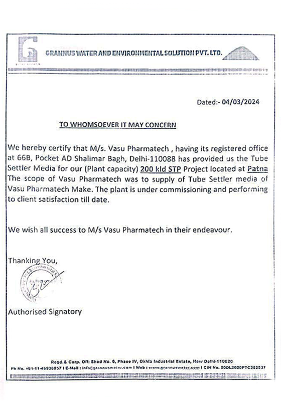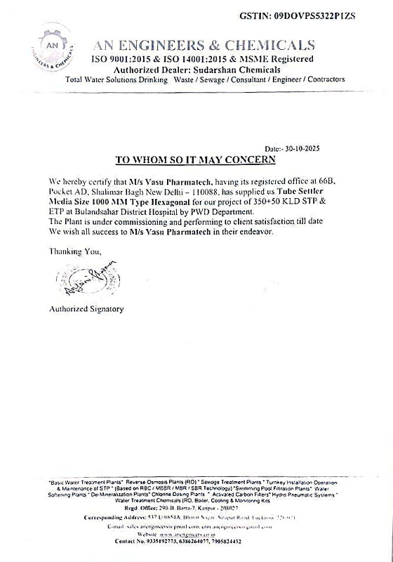 Formerly known as Pharmatech Filteration and Vasu Enviro Equips, Vasu Pharmatech® has evolved into a trusted and respected name in the industry. Our Tube Settler Media are proudly marketed under our proprietary brand “VASU PHARMATECH®”